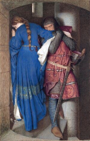 Встреча Хеллелиль и Гильдебранта на лестнице туреля (1864). Художник: Фредерик Уильям Бёртон