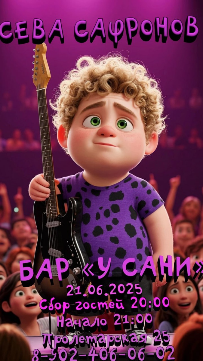 ‼️Уже в эту субботу, 21.06 в "Баре у Сани" выступит СЕВА САФРОНОВ со своей ПОП-РОК программой 🎤Вы услышите много ваших любимых композиций, таких артистов, как СПЛИН, Король и Шут, Linkin Park, Женя Трофимов иКомната Культуры, а также многое многое другое! 🎸Будет зажигательно, танцевально и весело🔥🔥🔥 Так же попьете наше вкусное пиво, любое разливное пиво 100 рублей, попробуете разные виды закусок и, в целом, хорошо проведете время✌️ 📍БАР-У-САНИ, Анапа, ул. Пролетарская 25/1 Собираемся в 20:00 🕗 Начало в 21:00 🕘 Входной билет 350 рублей Телефон для брони: +7 (902) 406 0602. Подписаться на Новости Анапы