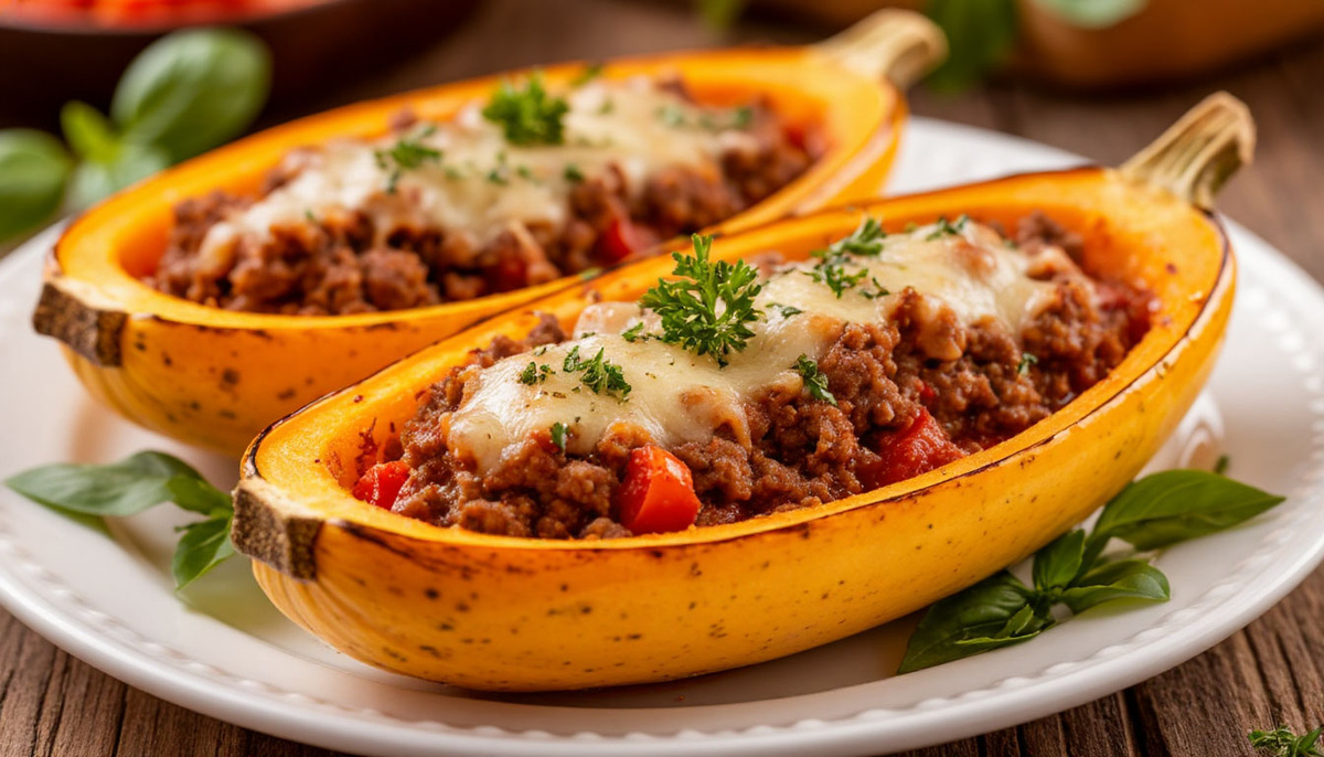 Свежая зелень (укроп, петрушка) для украшения Кабачки вымыть и разрезать вдоль пополам. Чайной ложкой аккуратно удалить мякоть, оставляя стенки толщиной около 1 см. Мякоть кабачков мелко нарезать. Лук и морковь очистить и мелко нарезать. Чеснок измельчить. В сковороде разогреть растительное масло. Обжарить лук и морковь до мягкости. Добавить фарш и готовить, помешивая, до изменения цвета. Добавить к фаршу измельченный чеснок, нарезанную мякоть кабачков, соль, перец и другие специи по вкусу. Тушить все вместе около 10-15 минут, до готовности фарша и кабачков. Сыр натереть на крупной терке. Лодочки из кабачков выло