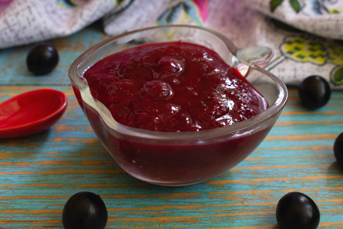 Варим джем 15 минут. Помешиваем. Измельчаем джем через мясорубку или блендером.