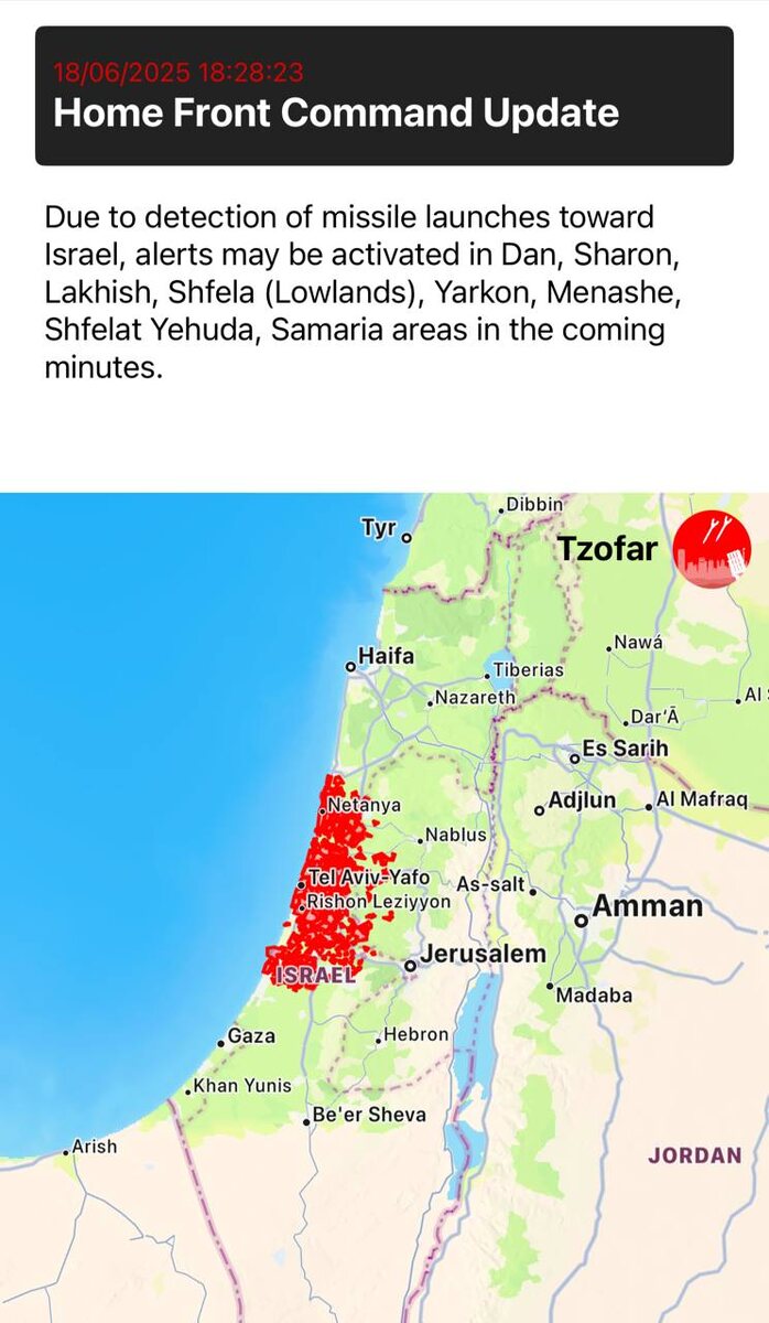 ❗️Missile ALERT in Tel Aviv Iranian ballistic missiles inbound