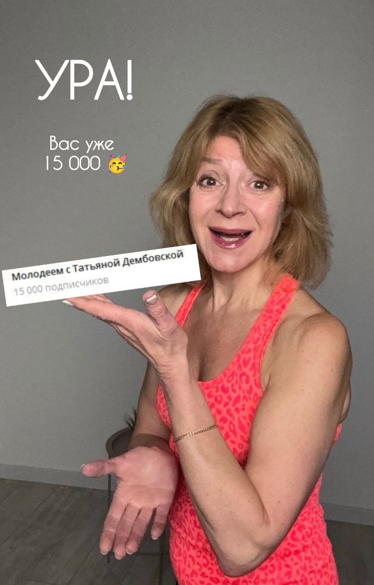 Дорогие, вас уже 15 000! Благодарю каждого подписчика за ваше доверие и желание становиться лучше, заботиться о своем здоровье и красоте❤️ И с радостью сообщаю: в честь такого события мы проведем мощную омолаживающую ОТКРЫТУЮ тренировку Клуба уже в эту субботу, 21 июня 🎉 Тренировка очень актуальна для лета и подойдет всем! Подробности и ссылку на регистрацию вы увидите в канале уже очень скоро💫 Люблю вас, прекрасные!❤️