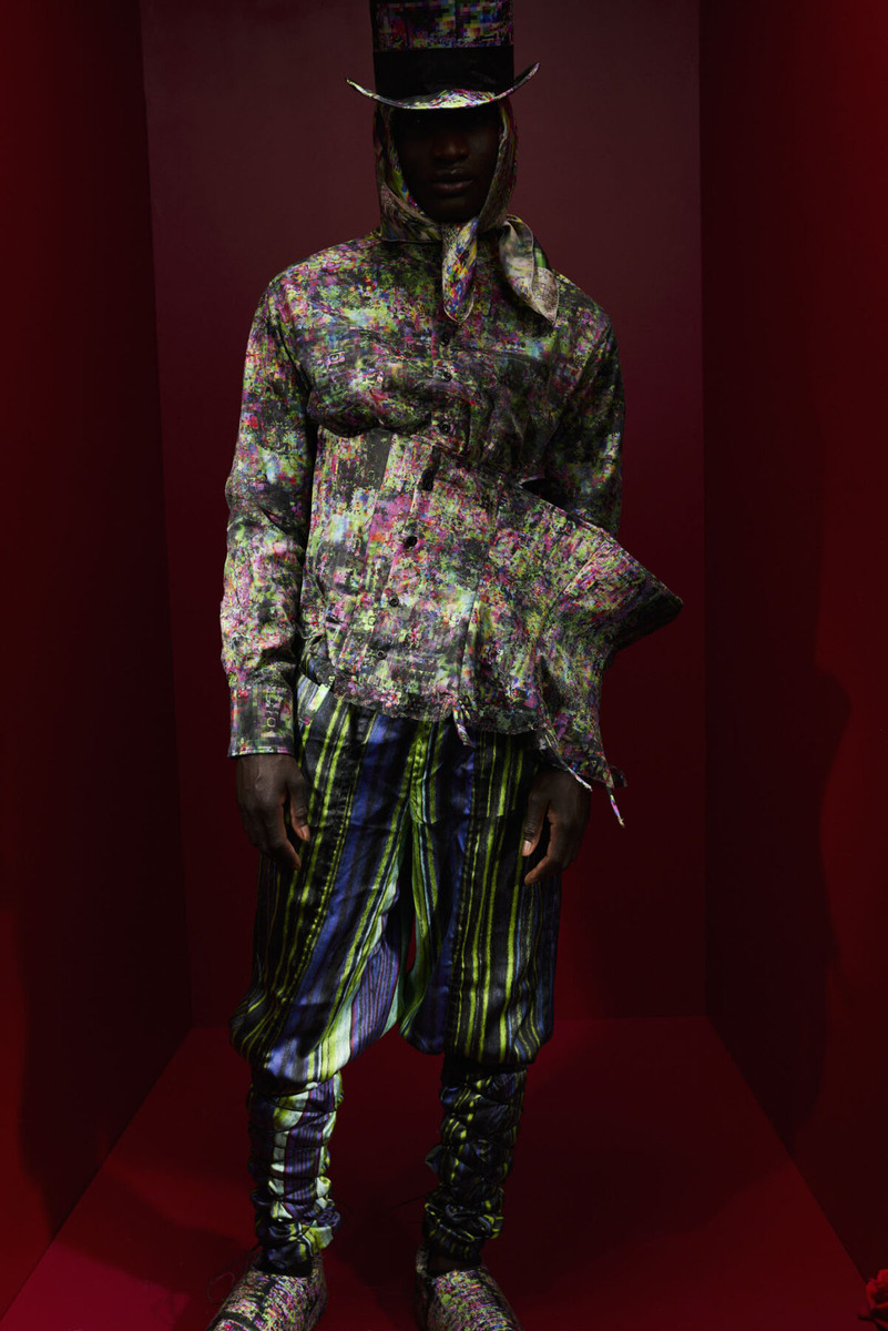 Дипломная коллекция Ээту Хейккинена — это смелый и инновационный взгляд на пересечение технологий и моды. Вдохновлённая сбоями и глитчами в видеоиграх, она исследует, как эти цифровые ошибки способны искажать не только миры и персонажей, но и реальность, в которой мы живём. В этой коллекции одежда становится зеркалом сломанной цифровой вселенной, где каждое платье, корсет и пиджак воплощают сбой в программной матрице, а сама реальность приобретает абсурдный, но завораживающий облик. Глитчи как новые тренды Эту абстрактную концепцию художник воплотил через образы викторианской моды, адаптированные к современной цифровой эстетике. Микс полутрадиционных силуэтов с эффектами глитча, которые искажают ткани и текстуры, создаёт ощущение присутствия персонажей викторианской эпохи в странном цифровом измерении. Они словно застряли в этом новом мире, не в силах найти дорогу назад в свою историческую реальность. Коллекция состоит из шести нарядов, где каждая вещь — это попытка синтезировать прош