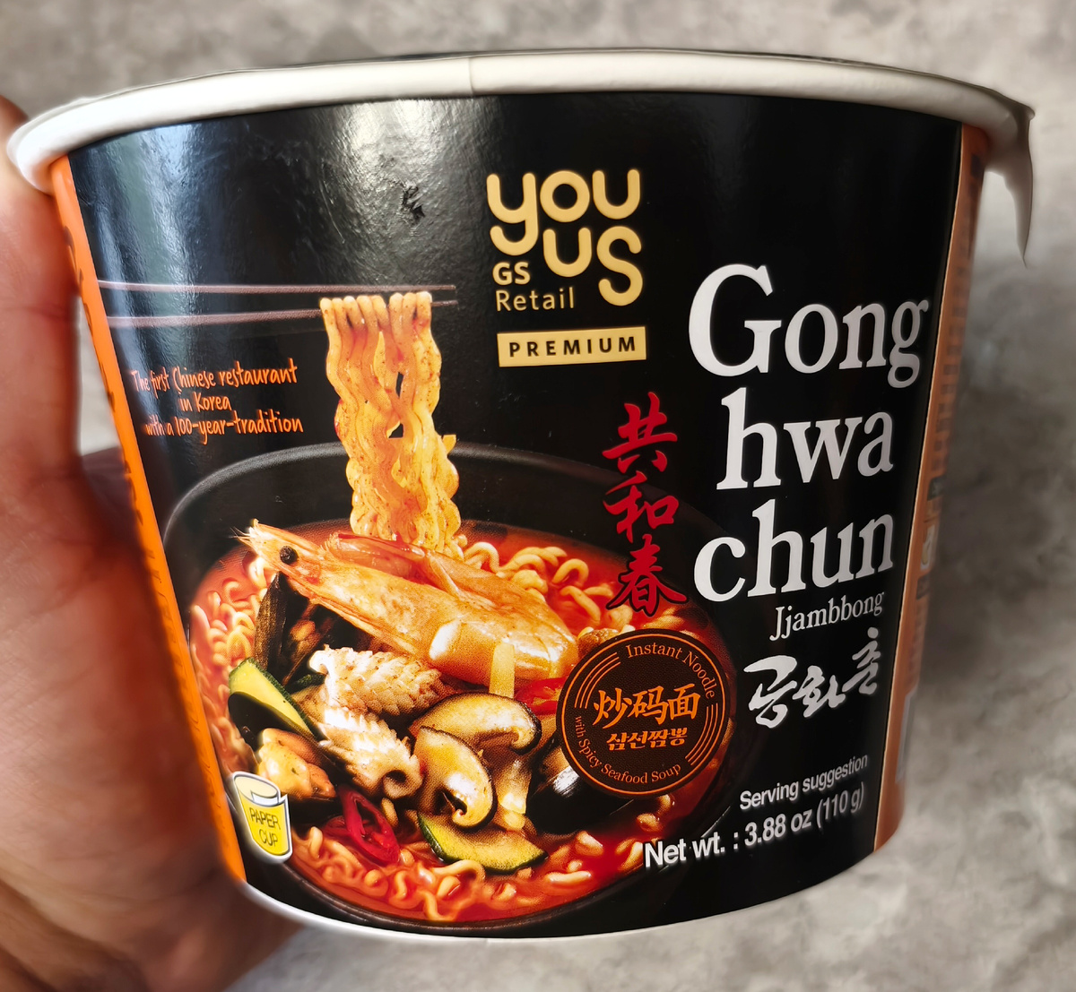 Всем привет! Прикупил интересную корейскую лапшицу бренда "You Us" в Фамилии. Gongwachun Jjambbong. Острый суп с морепродуктами. Гонгвачун - это ресторан в Корее со столетней историей. Видимо рецепт взят оттуда. Обошлась лапша в 159 рублей. Вполне адекватная цена для импортного продукта. Масса 110 граммов. Лапша изготовлена в Южной Корее. Импортер: ООО "ВЛ-Трейд", г. Москва. Из морепродуктов есть устрицы, кальмары, креветки, мидии. В общем морепродуктов много. А также много красного перца. Интересно, что значит только для Калифорнии, США. Рак и репродуктивный вред. В Калифорнии лапша вызывает рак? В общем перешёл я на сайт этот. И выяснил что у них есть какой-то список запрещенных продуктов, который может вызвать рак. Видимо в этой лапше есть что-то из списка. Но на нас это не распространяется, можно спокойно есть). Можно это лапшу заварить классическим способом, а можно залить холодной водой и разогреть в микроволновке. Никогда так не делал. Если нет чайника, но есть печ