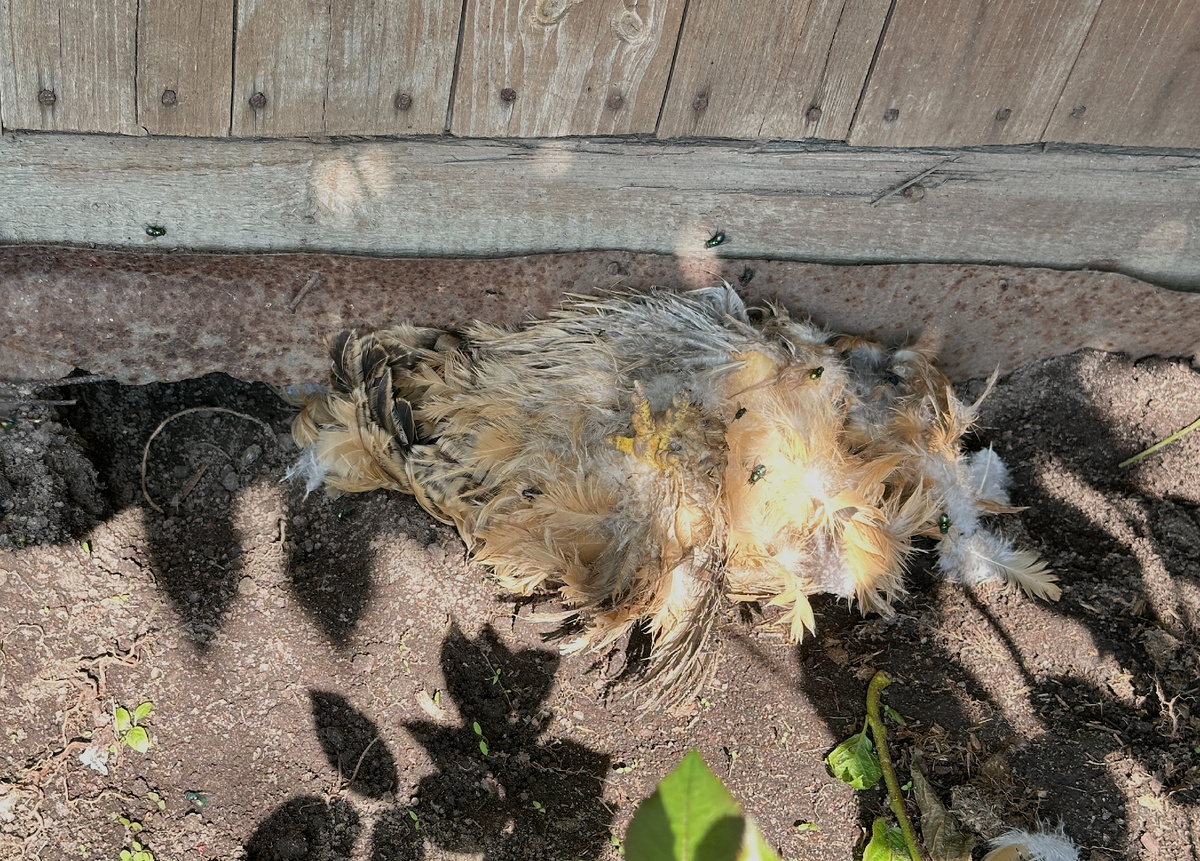Утром обнаруживаю пропажу курицы, карликовый кохинхин. Старенькая, но любимица. Не пересчитываю, конечно, каждое утро, но тут пропажа налицо: курица неживая лежит у колодезного домика. И не просто лежит, а, извините, из-под него … торчит.