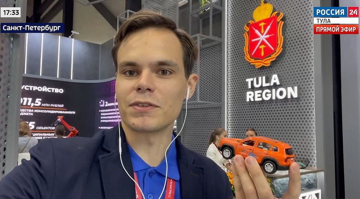 В среду, 18 июня, в северной столице стартовал Петербургский международный экономический форум. Это более 20000 участников из более чем 100 стран мира. На форуме будет работать и делегация Тульской области, её возглавит глава нашего региона Дмитрий Миляев, ожидается подписание крупных инвестиционных соглашений и договоров о сотрудничестве. В Санкт-Петербурге работает съёмочная группа тульских «Вестей». Корреспондент Никита Юрков: Мы прибыли на площадку ежегодного Петербургского экономического форума и работаем на тульском стенде. Сегодня день, так скажем, подготовительный, спокойный, расслабленный, потому что все важные подписания начнутся завтра. Как раз у нас есть прекрасная возможность осмотреть тульский стенд. Что здесь интересного? Гостей встречает необычная роборука, с помощью которой можно выиграть автомобиль «Хавейл», который производится в Тульской области. Мне это удалось. Вот такой замечательный оранжевый автомобильчик я вытянул себе. К сожалению, не настоящий пока. На тульс
