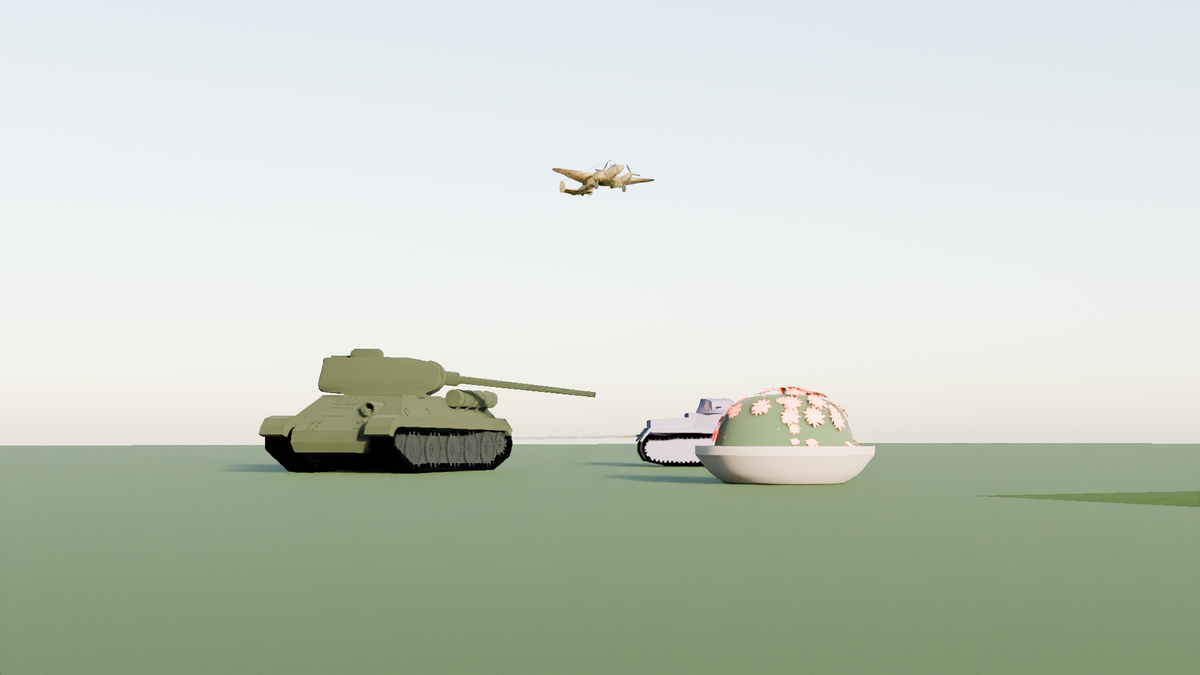 Солнечный луг искрился под полуденным зноем. Высокая трава, усыпанная полевыми цветами, колыхалась от легкого ветерка, разнося сладкий аромат. В самом центре луга, словно драгоценный камень в оправе, возвышалась большая чаша, высеченная из серого камня. Внутри нее, словно живое пламя, пылал куст коралловых цветов. Их лепестки, словно капли застывшей крови, переливались на солнце, а тонкий, дурманящий аромат плыл по лугу, умиротворяя все вокруг. Рядом с чашей, словно огромный, довольный кот, развалился Т-34-85. Его выкрашенный в зеленый цвет корпус, казалось, впитал в себя тепло солнца. Гусеницы, уставшие от бесконечных маршей и сражений, утопали в мягкой траве. Башня, обычно настороженно вращающаяся, замерла, словно прислушиваясь к пению птиц. Т-34-85 наслаждался покоем. После долгих месяцев войны, после грохота орудий и запаха пороха, этот солнечный луг казался ему раем. Он чувствовал, как тепло солнца проникает в его броню, расслабляя каждую деталь, каждый болт. Но идиллия не могла