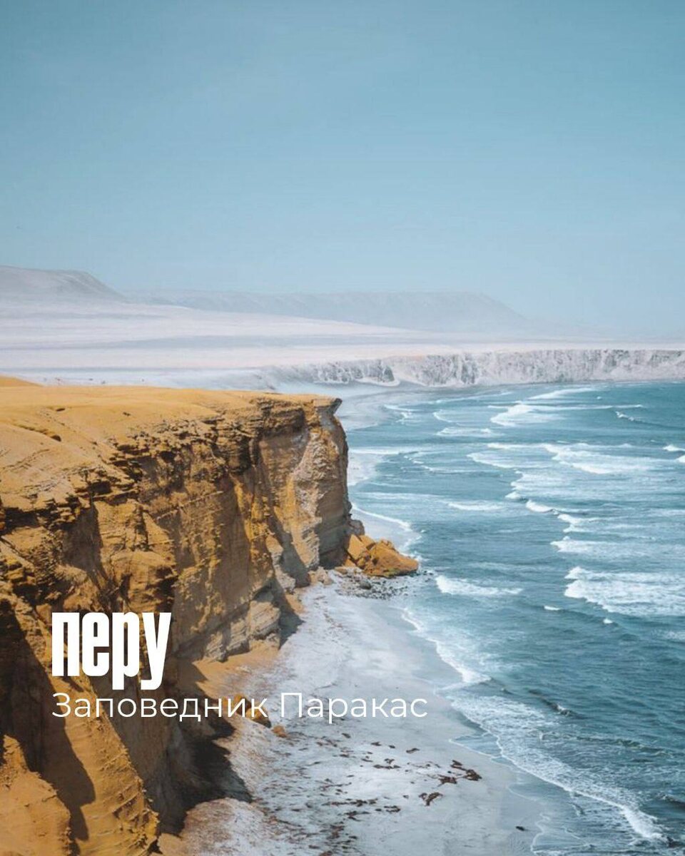 МЕСТА, ГДЕ ПУСТЫНЯ ВСТРЕЧАЕТ МОРЕ Есть что-то притягательное в этом контрасте — горячий песок, солёный воздух, бескрайние горизонты. Если вам, как и мне, нравится эстетика пустынных ландшафтов — вот несколько мест, где пустыня буквально сливается с морем: 📍 Перу, заповедник Паракас (регион Ика) Тихоокеанское побережье с дюнами, скалами и пеликанами. Лодочные прогулки к островам Бальестас, где живут морские котики и голубоногие олуши. Комбинируют с оазисом Уакачина и Наской, чтобы разбавить 7-часовой переезд из Лимы. Я считаю, что место крайне переоцененное! 📍 Намибия, Скелетон Кост Одна из самых древних пустынь мира вплотную подходит к Атлантике. Из-за разницы температур здесь постоянные туманы, погубившие множество кораблей (отсюда и название). Это место в моем виш-листе: роскошные лоджи, загадочные остовы кораблей, черные пустынные львы и никого вокруг. 📍 Марокко, Дахла Юг страны, узкий полуостров между Атлантикой и Сахарой. Лагуны, барханы и океан встречаются в одном кадре. И