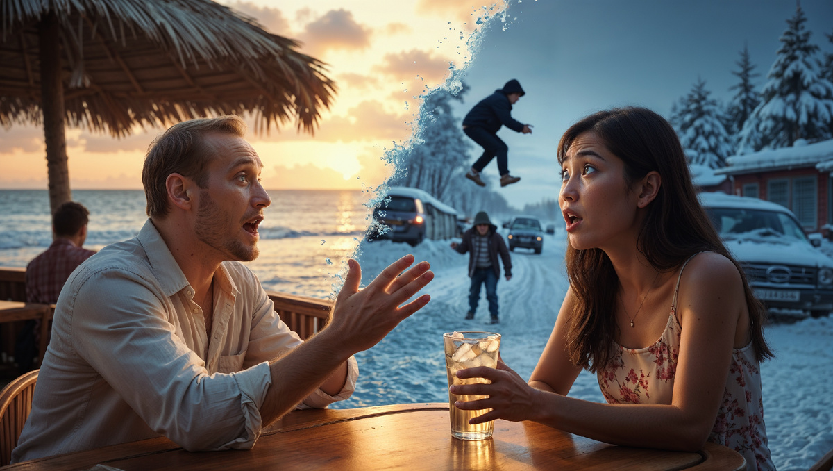 "Как странно — он приехал сюда убежать от холода, от снега, от долгих зим… А теперь сидит и с теплотой вспоминает те же самые вещи, от которых устал. Может, всё дело в том, как тебе это преподносят? Или в том, кто рядом с тобой в момент рассказа?"