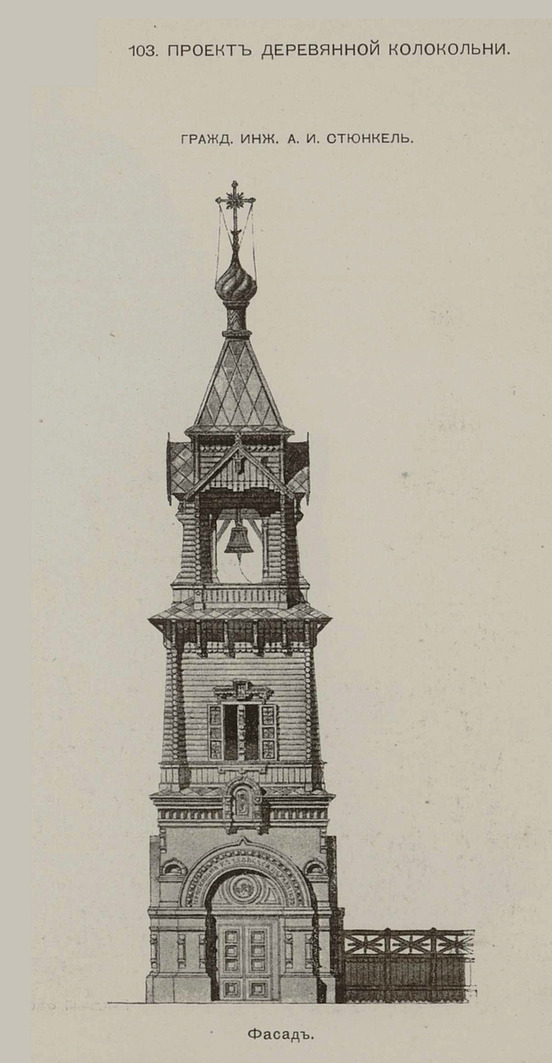 Проект № 103. Проект деревянной колокольни. Градж. Инж. А.И. Стюнкель.