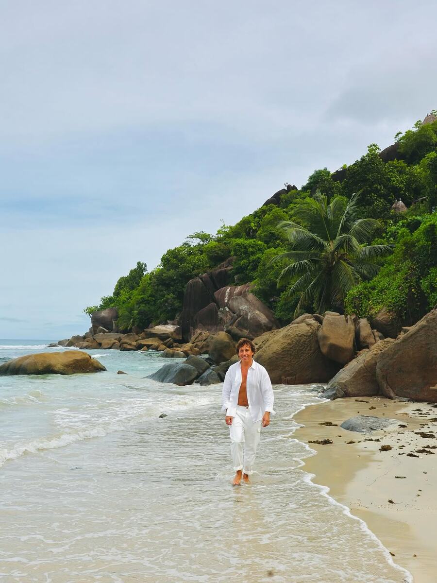 Итак, что у нас по факту: звёздный муж, Максим Галкин*, отмечает свой 49-й день рождения на райских Сейшелах, греясь под солнцем в компании любимых детей — Лизы и Гарри.