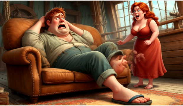 Громогласно икнув, он скинул с ног шлепанцы и улегся на диванчике, поджав под себя ноги. Как только голова его коснулась подушки, на него навалился тяжелый ватный сон, в котором он рулил огромным деревянным кораблем, а рядом с ним стояла толстая рыжая баба и во весь голос орала на него: