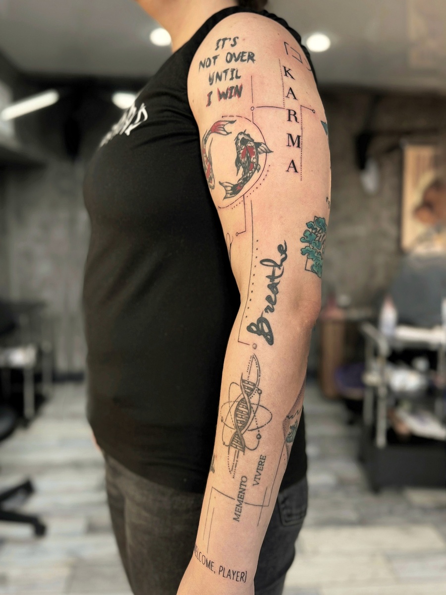 Я тоже не знаю... Привет! Я — Настя, и вот уже 9 лет делаю татуировки в Москве. На канале вы найдете примеры моих работ и много полезных материалов про татуировки. Будем знакомы) Присоединяйтесь ко мне в Телеграм — там уникальные предложения, которых больше нигде нет, кринж истории из практики и просто много лайфа) Одни называют его линейным, другие — микрореализмом, третьи еще как-то. Но суть вот в чем: Много маленьких и самостоятельных татуировок соединены в один рукав. Между ними нарисованы линии, точки, кружочки, которые превращают их в одну картину. Самое главное — это выглядит стильно. Не партачно, а именно интересно. И в последнее время я замечаю все больше таких рукавов) Так что если у вас есть много маленьких идей, и все их хочется реализовать — это очень классное решение! Рукав, который будут рассматривать ооочень долго)) P.S. Как в итоге назовем стиль-то?) А пока читайте мои другие интересные статьи: