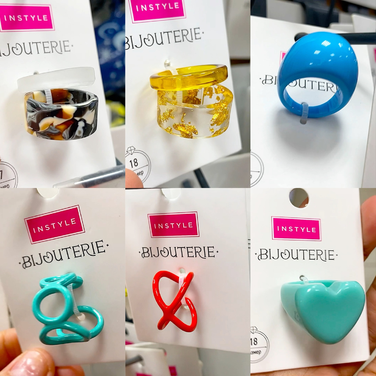 Так же есть как одно кольцо, так и 2 кольца в наборе. Размер так же разные: 17-18 мм. Состав: ненасыщенная сложноэфирная смола,акрил.