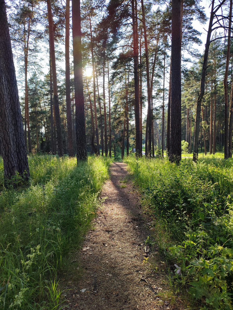 Эту тропу помню ещё с детства. Смело может претендовать на тропу здоровья, ко всему прочему не далеко от больницы. Воздух тут обалденный не смотря на то, что рядом дорога и ездят машины. Аромат сосен смешивается с цветами и вообще кайф.