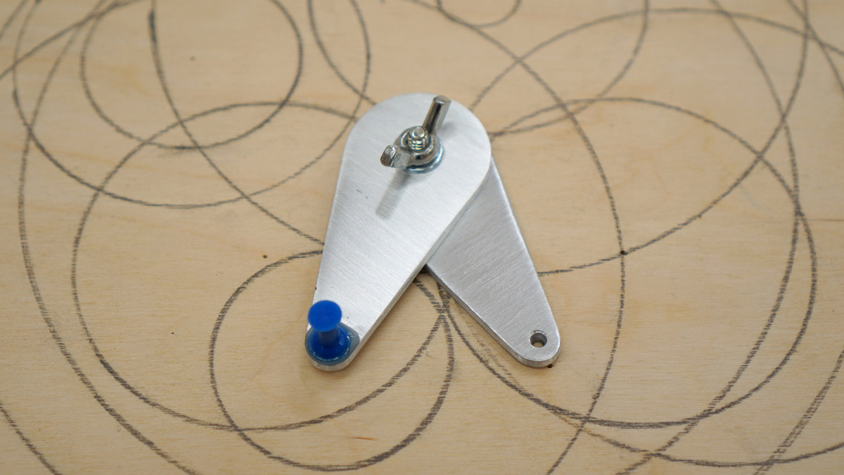 Это очень простой и небольшой проект, который действительно пригодится в мастерской. Конструкция этого компактного циркуля проста и состоит из обычных деталей, которые в принципе есть у каждого мастера под рукой, но при этом циркуль имеет широкий диапазон использования — с его помощью можно рисовать окружности диаметром от 12 мм до 180 мм. В целом, какой размер циркуля вы сделаете, зависит от вас. Также подготовил шаблон в PDF, который можно ,бесплатно скачать на Boosty Пять лет использования доказали, что этот циркуль надежен и полезен. Деревянная версия до сих пор в отличном состоянии, но я решил сделать новый — на этот раз из алюминия: Алюминий достаточно мягкий для обработки обычными столярными инструментами, но гораздо прочнее дерева той же толщины. Форму рычагов я разметил от руки, используя шайбы для окружностей. Вырезал ножовкой, а затем доработал на ленточно-шлифовальном станке — идеальный инструмент для такой работы: В нижнем рычаге (куда вставляется карандаш) сделал зенковк