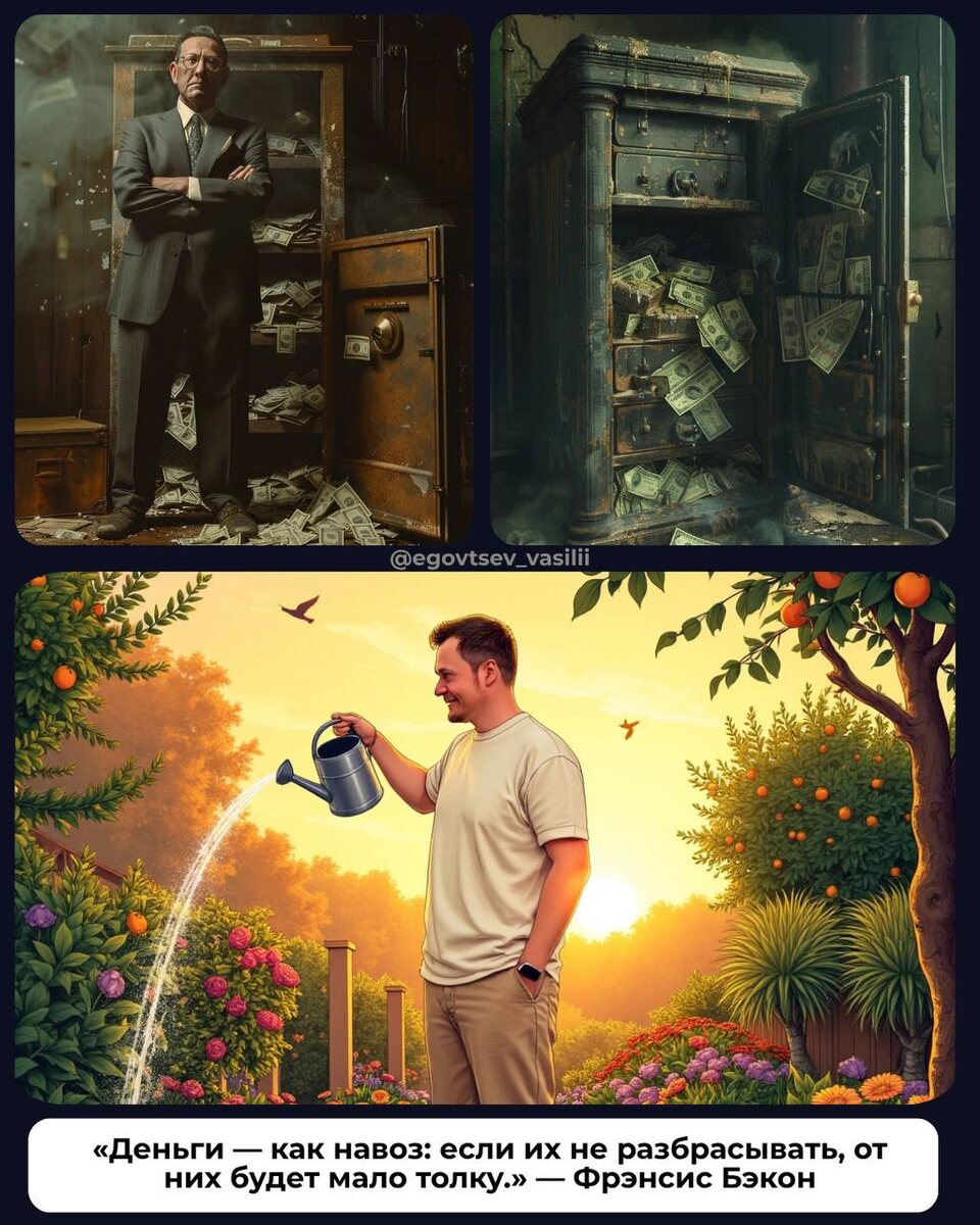 Деньги, запертые в сейфе, дают чувство контроля. Но настоящая сила — в том, чтобы направлять поток. Инвестируйте, создавайте, приумножайте. Потому что капитал работает только тогда, когда работает.