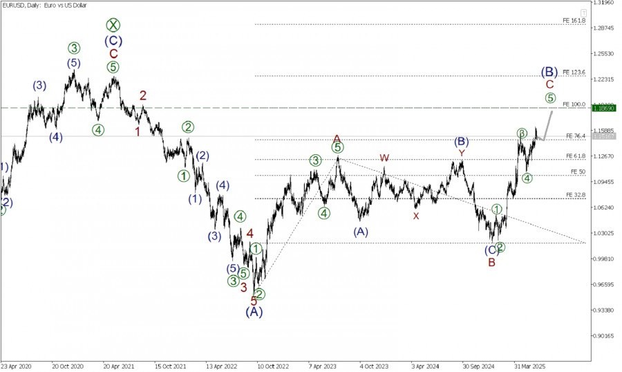 https://basechop.ru/wordpress/?p=46943 Рынок по Евродоллару в долгосрочной перспективе может формировать крупную бычью коррекция (B), которая принимает форму стандартного зигзага A-B-C. На сегодняшний день полностью завершены только первые две его части – импульс A и коррекция B. На последнем участке графика мы можем наблюдать развитие бычьей волны C, которая, по всей видимости, принимает форму импульса. На текущий момент завершены первые четыре его части – подволны [1]-[2]-[3]-[4]. В процессе построения ,бычья финальная подволна [5]. Большая вероятность, что быки внутри волны [5] смогут отправить рынок в область уровня 1.186. На указанной отметке величина крупной импульсной волны C составит 100% по расширению Фибоначчи от предыдущей импульсной волны A. Таким образом, при продолжении роста, стоит рассмотреть открытие длинных позиций с текущего уровня, с целью забрать прибыль на указанной отметке. После достижения уровня 1.186, ожидается смена тренда, а именно ожидается развитие…