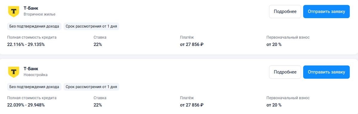 Программы касаются ипотеки на покупку готового или строящегося жилья, а еще в Т-банке можно рефинансировать ипотеку, которую вы взяли в других банках.