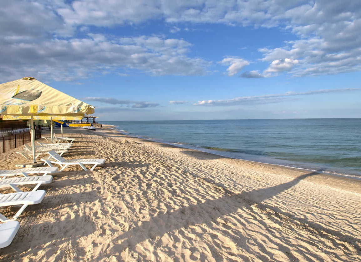 Самый комфортный месяц для пляжного отдыха — июнь. Температура воздуха +25-27°C, вода прогревается до +21-26°C. Никакой августовской жары под +40°C, когда море зацветает и купание запрещают.