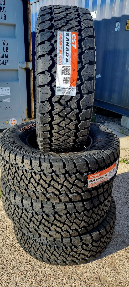 Ну вот наконец-то в преддверии сезона решил написать свой отзыв о шинах CST Sahara AT2 285/70R17LT /121/118Q. Пробег за 2 сезона составил на них около 62т.км. Шины достаточно тяжелые в размере 285/70/17 вес шины составляет чуть больше 27кг. Так как я очень часто катаюсь в лес, на рыбалку, по работе, то всё же большая часть пробега это асфальт, поэтому однозначно ат шины), но ат шина для меня должна быть универсальной, не такой шумной как мт, но с прочной боковиной и хорошо разряженным протектором для самоочищения в реалиях лайт-оффроуда.Откатался на них все лето, осень и для тестов покатался зимой. И так выводы. ПЛЮСЫ : -очень уверенное поведение на трассе, нет аквапланирования. -глубокий протектор 13мм, а это больше чем у ближайших конкурентов (Maxxis RAZR AT, CST Sahara AT318 ) -хорошая износостойкость (при пробеге 62ткм.остаточный протектор составил перед 8мм зад 7мм, 10ткм -1мм). -хорошая боковина, можно смело травиться в 0,3-0,5 атм.(на таком давлении появляется очень хорошая плю
