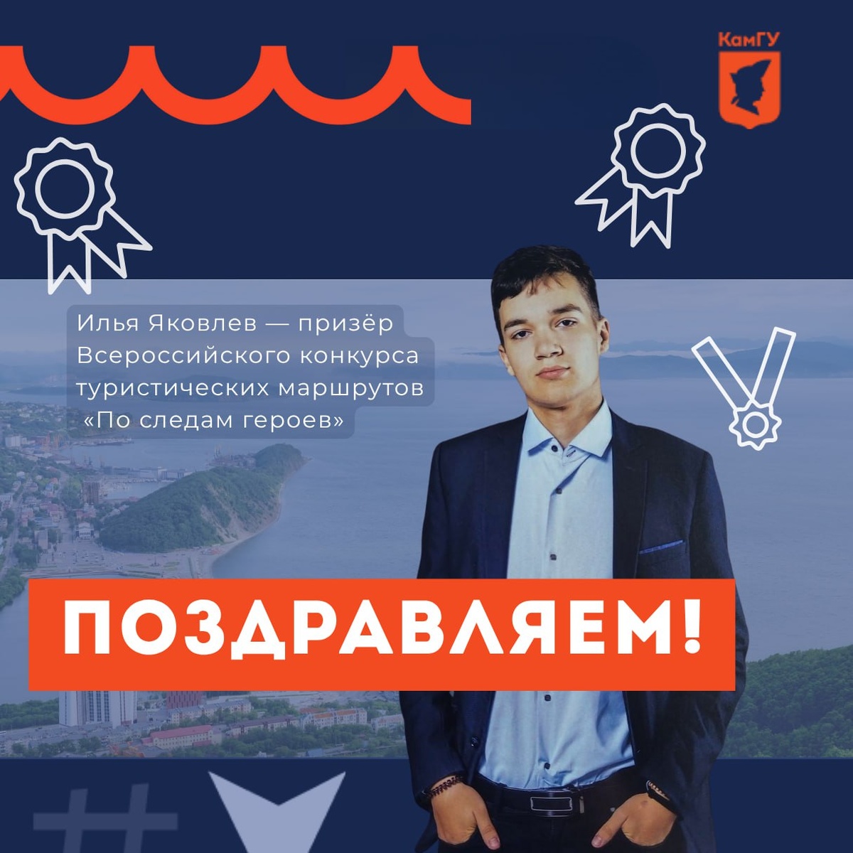 У КамГУ им. Витуса Беринга серебро Всероссийского уровня! 🥈 Команда КамГУ стала призёром Всероссийского конкурса туристических маршрутов «По следам героев: Путешествия по России», посвящённого 80-летию Победы. В номинации «Исследователи героизма» наша команда представила авторский маршрут: «Петропавловск-Камчатский — город-труженик тыла и город в прифронтовой полосе». Проект раскрывает малоизвестные страницы истории Камчатки и её вклад в Победу в Великой Отечественной войне. 👨🎓 Авторы маршрута: — Илья Яковлев, студент группы Иб-24, – Силинкова Валентина, аспирант КубГУ. 🎓 Научный руководитель — Алина Игоревна Кириллова, и.о. заведующей кафедрой истории и философии КамГУ, кандидат исторических наук. Что дальше? 🔴 Маршрут войдёт в сборник лучших туристических маршрутов России 🔴 Он станет доступен участникам программы «Студтуризм» 🔴 А наши ребята смогут съездить по маршрутам других финалистов — отличная возможность увидеть страну! Поздравляем авторов и благодарим наставника