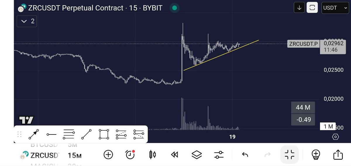 Резкий всплеск объемов повлек за собой памп. Сейчас монета наторговывает наклонный уровень пробой которого я ожидаю.