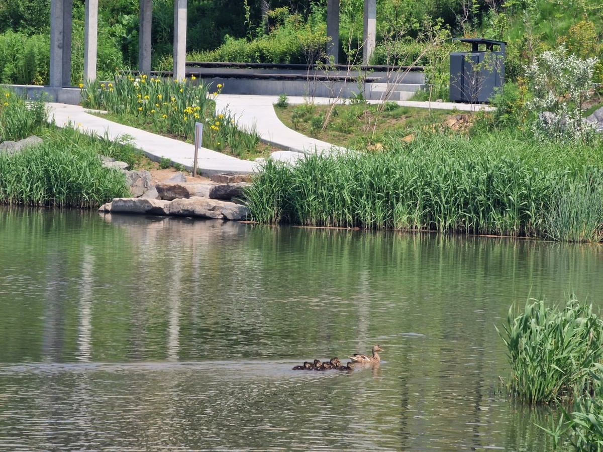 — В районе озера, где ранее был пустырь и текла канализация, высажены тысячи деревьев, обустроены валы и благоустроена территория. Теперь в парке слышны птицы, а не машины. Озеро стало местом обитания дикой природы — там можно наблюдать за утками и другими птицами, — отметил Алексеев.