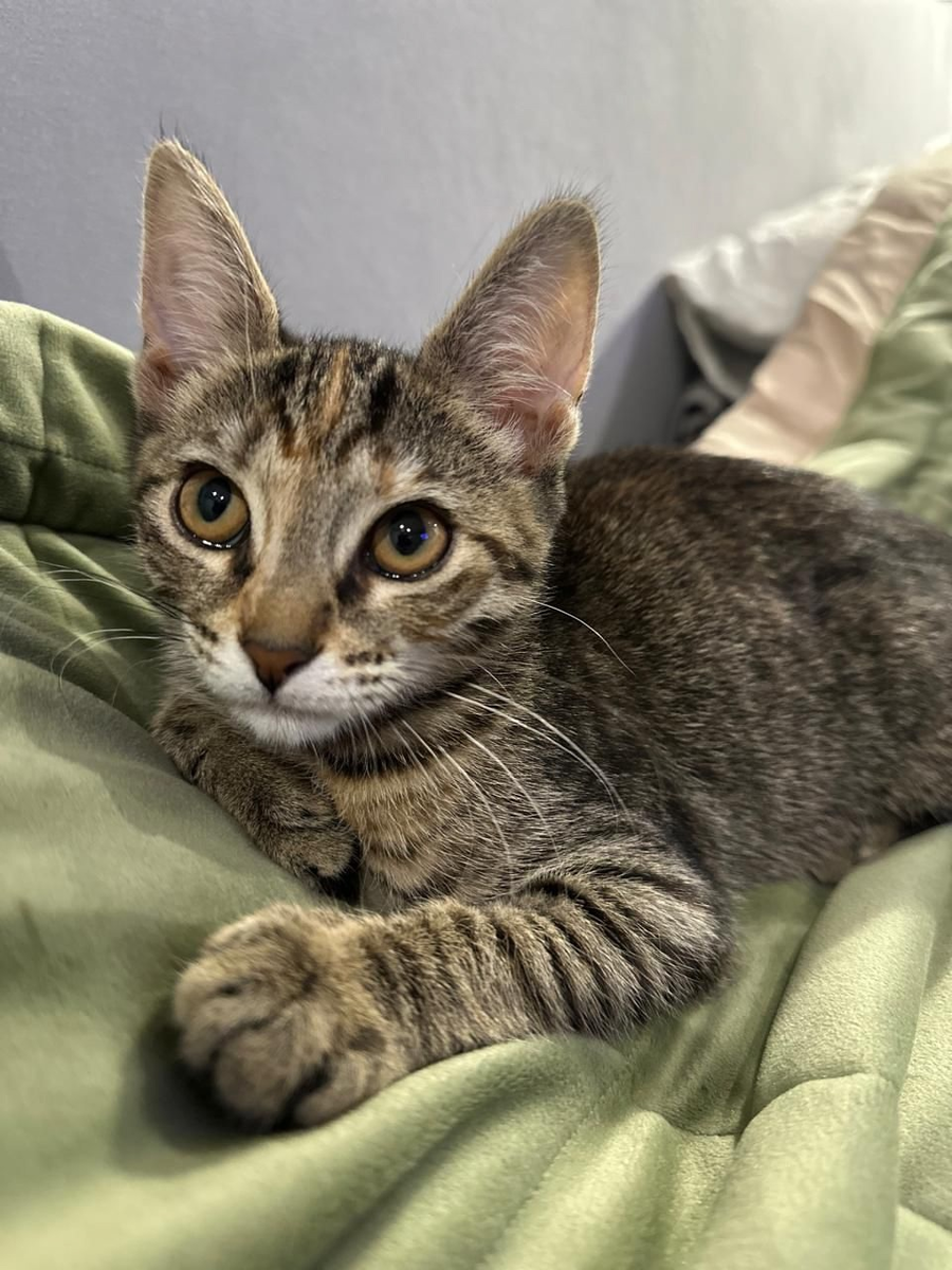 Сорта - так назвали малышку в честь героини книги о сильной женщине. Может, это имя поддержит котёнка в поиске семьи? Характер у девочки уже чувствуется 😄. Она в меру ласковая, мурлыка, особенно когда приходит спать под бочок, но не навязчивая, вполне может сама играть, занимать себя в отсутствие человека. Сорта ещё кроха, ей всего 3 месяца, она растёт, познает жизнь, и готова полюбить будущего хозяина всей душой, ждать, смахивать своим игривым хвостиком все тревоги. А ещё её можно взять в компанию к сородичам - девочка их обожает 😸.