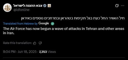 ❗️Israeli military says its Air Force has begun a ‘NEW WAVE’ of attacks in Tehran