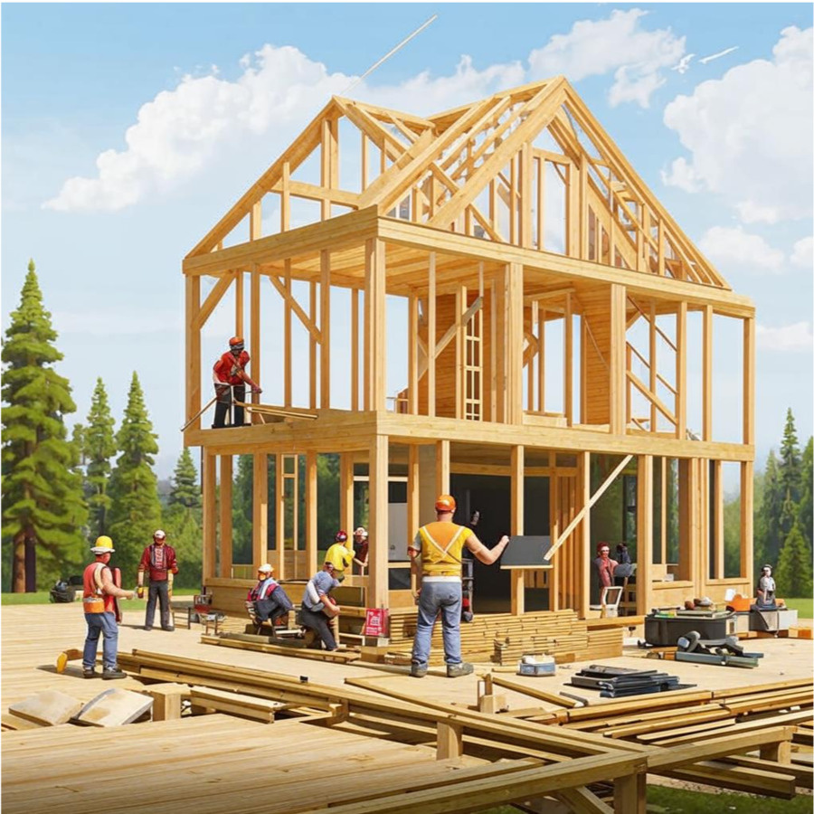 время на заселение. - Экономичность: Стоимость строительства каркасного дома в 2-3 раза ниже, чем строительство дома из кирпича или бетона.
