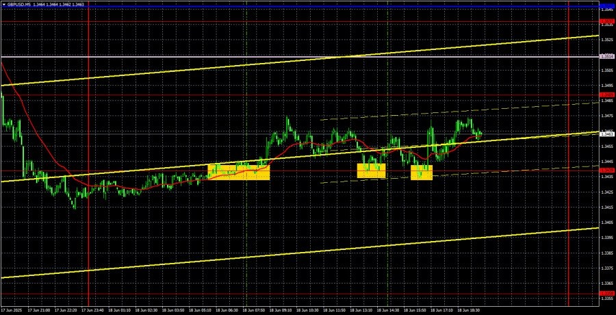 https://basechop.ru/wordpress/?p=46954 Анализ GBP/USD 5М. Валютная пара GBP/USD в среду в течение дня демонстрировала восстановление после обвала во вторник. Напомним, что падение котировок британского фунта было связано(скорее всего) с весьма вероятным вступлением США в войну против Ирана. Дональд Трамп собирается теперь установить мир на Ближнем Востоке, но мир, конечно же, по его правилам и представлениям. Рынок во второй раз отреагировал покупками доллара на новости об эскалации конфликта на Ближнем Востоке, но, как и в первый раз, рассчитывать на дальнейшее укрепление американской валюты не приходится. Вчера в Великобритании вышел отчет по инфляции за май. Потребительские цены замедлились в своем росте до 3,4% в годовом исчислении, что особо ни на что не влияет. Инфляция на Туманном Альбионе все равно остается слишком высокой, а Банк Англии, вероятно, уже жалеет о последнем смягчении монетарной политики. Сегодня состоится следующее заседание Британского регулятор, и можно не…