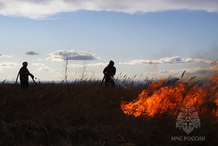 Огнеборцы из хакасского Белого Яра при помощи местного угольного разреза тушили степной пожар в Алтайском районе. Фронт огня составил два километра!