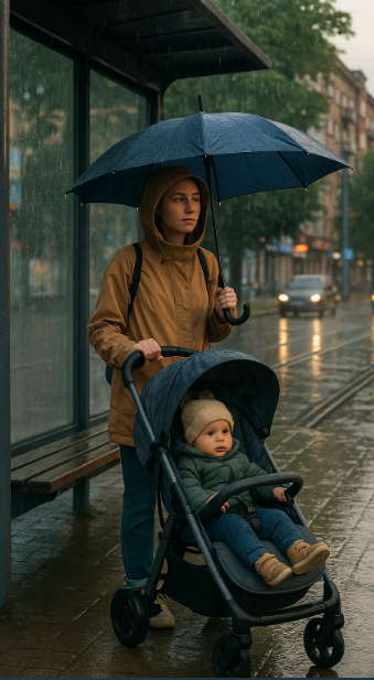 Представьте себе: ливень как из ведра, ветер срывает зонты, люди прячутся под козырьками. На автобусной остановке стоит девушка лет двадцати пяти с коляской. Промокшая насквозь.
