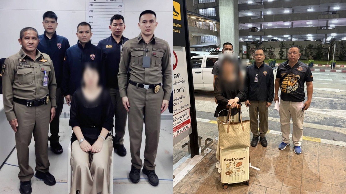Как следует из текста, женщину задержали «в зале прилета международных рейсов». На одной из фотографий она запечатлена сидящей в отделе Иммиграционного бюро, на другой – стоящей с чемоданом и сумкой у выхода из терминала.