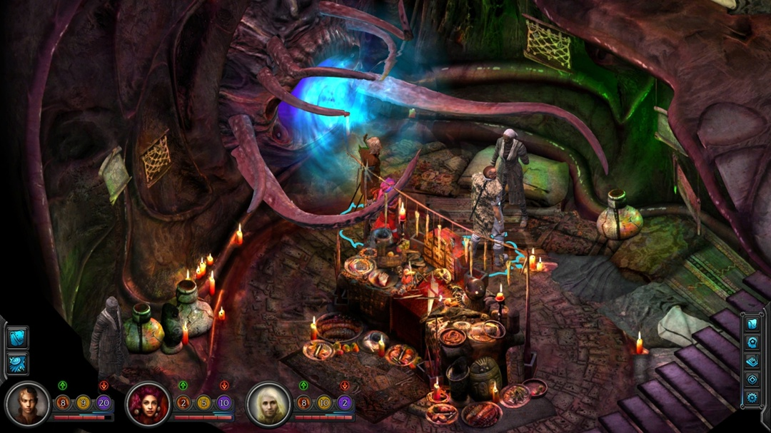 В Torment три вида характеристик, которые расходуются при выполнении квестов и в сражениях: сила, скорость и интеллект. Игрок всегда управляет всей командой персонажей, выбрать кого-то одного нельзя — ранее я такого не видел, идея отличная. При проверке навыков, тем не менее, игрок всегда выбирает, кто именно будет проходить проверку, и выбор зависит не только от общего количества расходуемых очков, но и от значения максимального усилия персонажа.