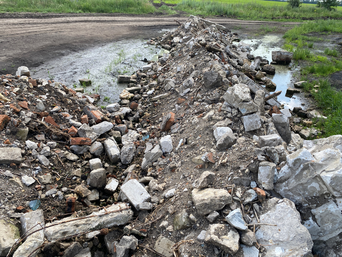 Едва только я свернул с дороги на грунтовку, увидел кучу строительного мусора. Там была огромнейшая лужа, и эту лужу, видимо, пытались засыпать.