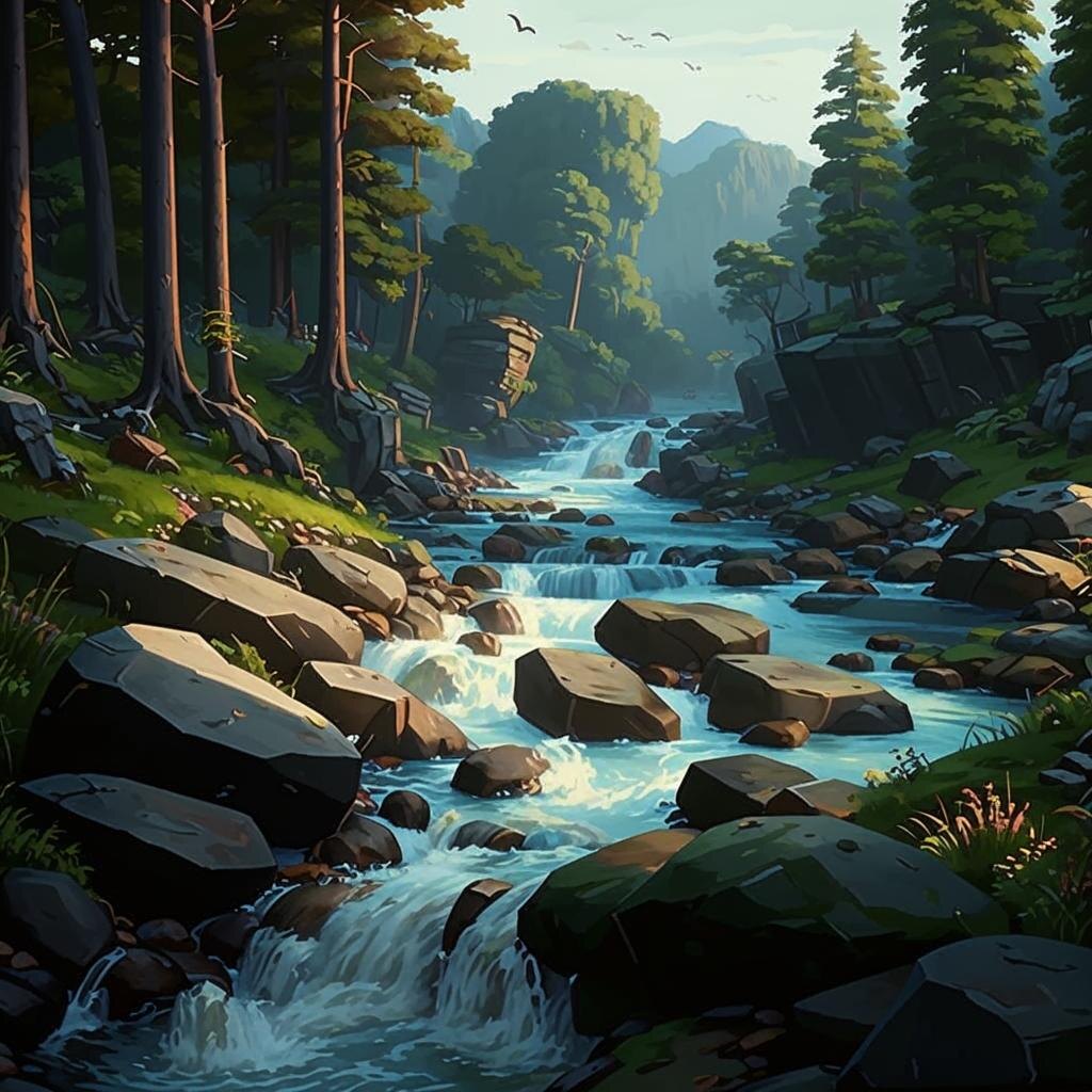 Толкаясь шестом, словно посохом длинным, Речной проводник направлялся к глубинам, Стараясь уйти от крутых берегов. Когда впереди появлялся порог, Он начинал отправлять плот туда, Где не бурлила активно вода, И, дав приказание крепче держаться, По бурным порогам умело сплавлялся.