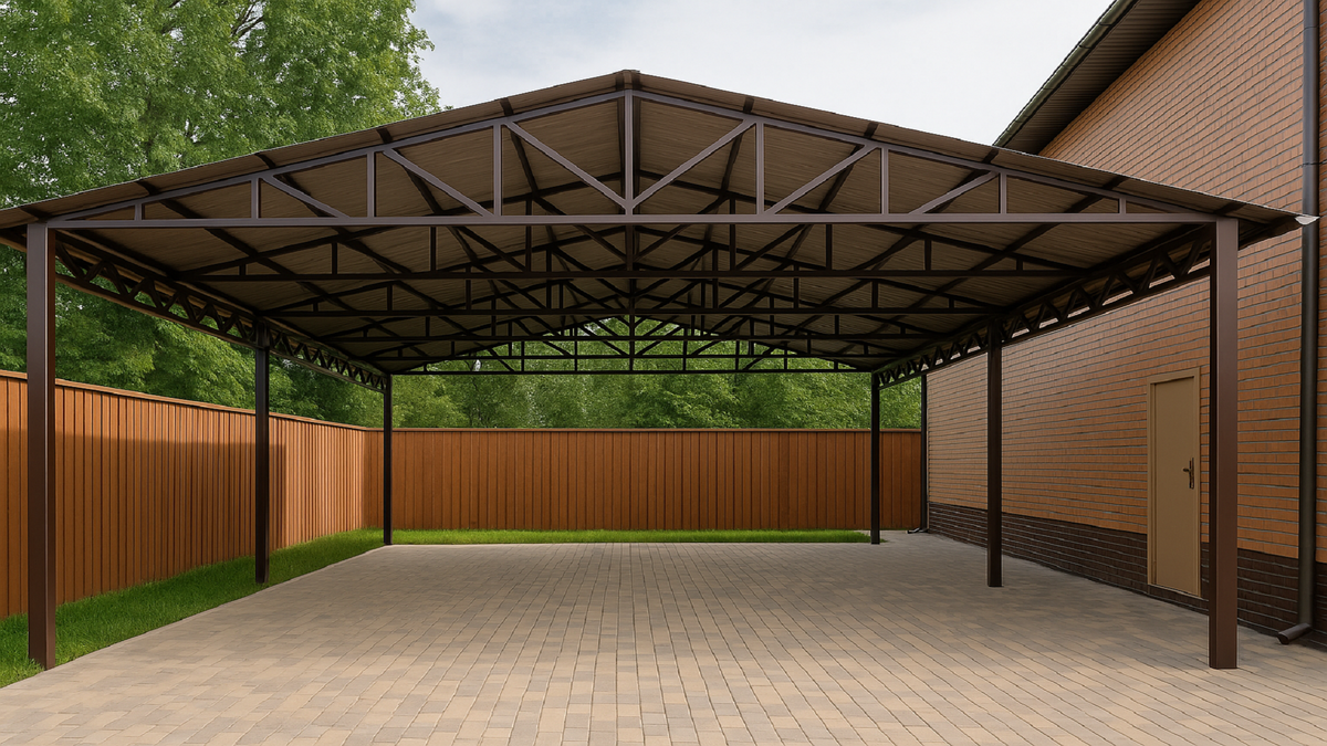 - Функциональные особенности: Иногда конструкция широкой фермы может быть использована для прокладки коммуникаций (электричество, водосток) внутри ее контура, что делает навес более функциональным и эстетичным.