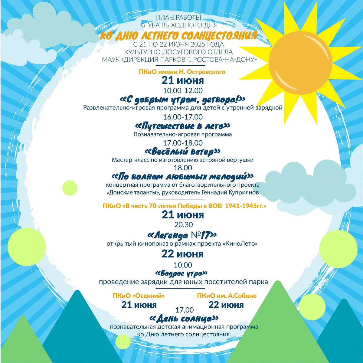 Мероприятия Выходного дня в парках города ко Дню летнего солнцестояния
