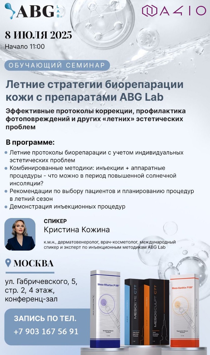 ✏️Тема: «Летние стратегии биорепарации кожи с препаратами ABG Lab.