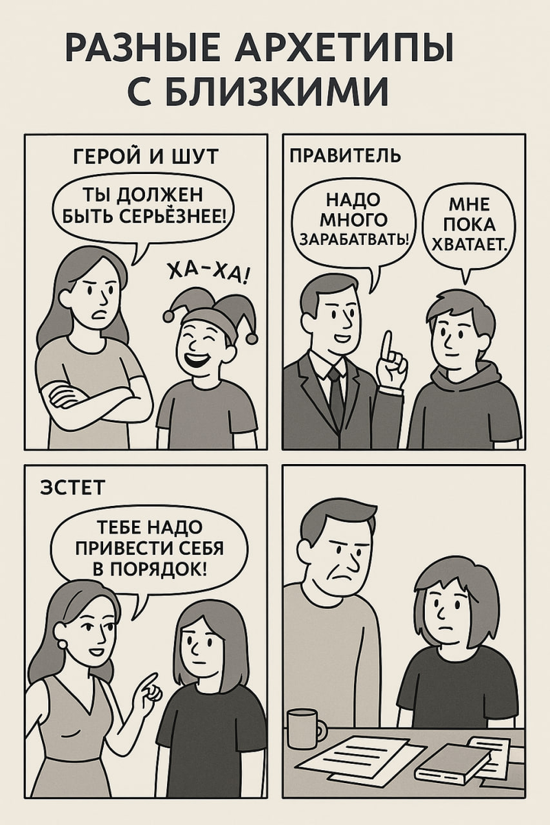А ведь не только муж (жена), но и твои дети - других архетипов, склонностей, у них свои интересы. У них свой опыт, своя значимость каких-то занятий, людей, вещей. Ну и до чего-то они еще не доросли морально, что-то еще у н
