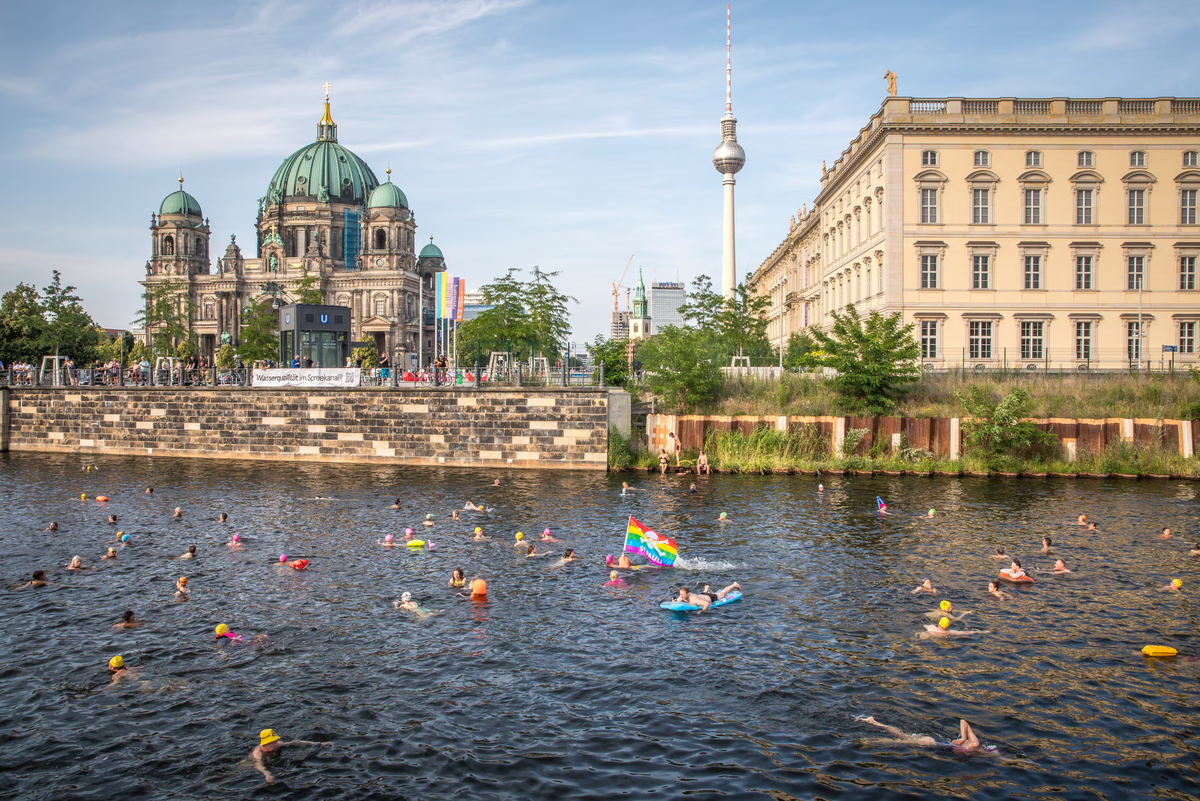 Тут интересная вещь выяснилась. Олимпиада прошла, а запрет на купание в Сене так и не сняли. Не даром Макрон сначала грозился сам в ней искупаться, а потом вдруг резко передумал. Тем не менее, у спортсменов выбора не было - вот вам дорожка, плывите. Правда, потом некоторых тошнило, но вы же понимаете, "это другое". Итак, новость. Давайте начнём её картинкой из Берлина. Ну, куда ж европейцам без своего любимого флага то?! Власти Парижа заявили, что по просьбам горожан часть Сены, возможно, всё-таки откроют для купания. Берлинцы на этом фоне призывают власти также разрешить купание в реке В последний раз, когда в центре Берлина проходило полноценное купание в реке, до того, как сто лет назад доступ туда был запрещен, там, вероятно, было меньше надувных единорогов и флуоресцентных водных палок. Однако на этой неделе демонстрация «Купимся-купаемся-ура!», призванная добиться отмены запрета эпохи бурных 20-х годов, собрала около 300 человек, многие из которых были в ярких шапочках для плава