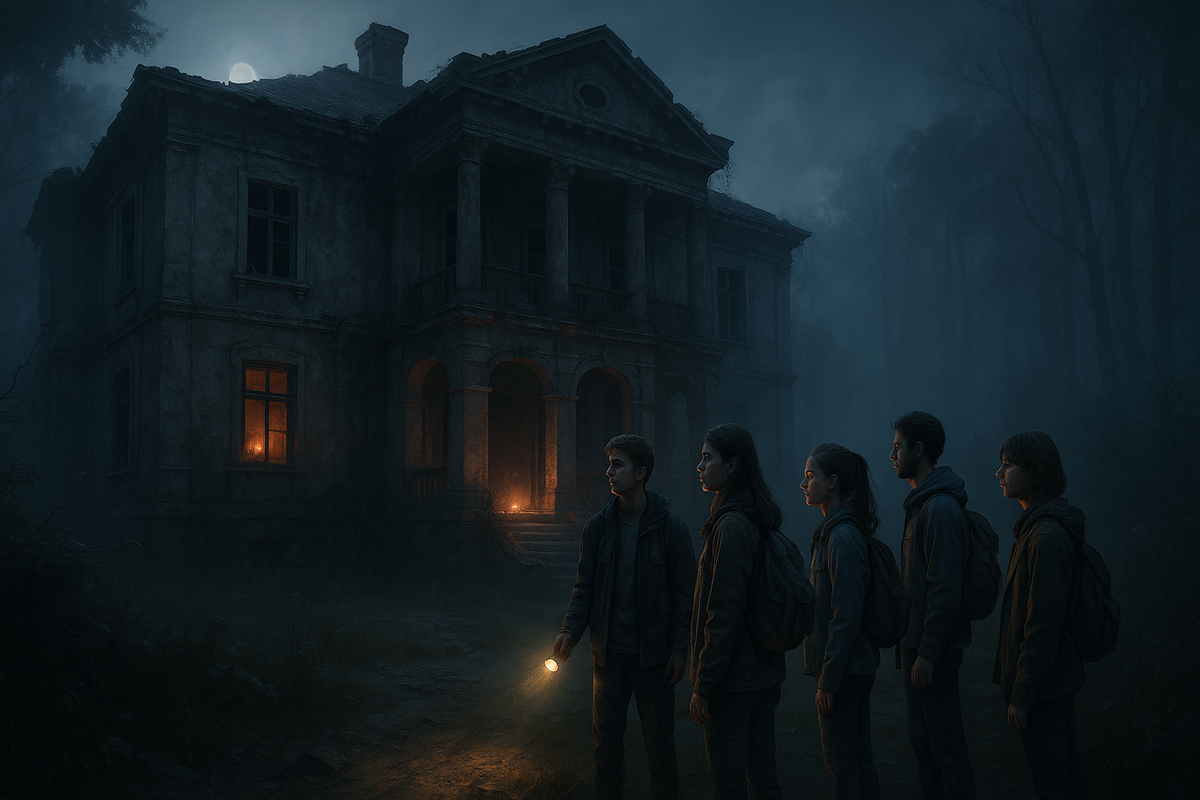 Солнце клонилось к закату, когда шестеро друзей подъехали к полуразрушенной усадьбе, стоящей в стороне от людских дорог, среди густого леса. Легкий туман уже начинал подниматься с влажной земли, обвивая деревья и придавая пейзажу зловещее очарование. Марк, высокий и уверенный в себе, первым вышел из машины. Он окинул взглядом усадьбу обветренный фасад, сломанные ставни, заросший плющом фронтон. — Ну что, ребята, выходные в стиле Хичкока начинаются! усмехнулся он, хлопнув дверцей. Катя, вытаскивая рюкзак, хихикнула: — Я надеюсь, всё-таки ближе к Стивену Кингу. Немного страха ещё никому не мешало. Витя закатил глаза и пробурчал: — Вы в своём уме? Эта рухлядь выглядит так, будто рухнет от одного громкого слова. Алина подошла ближе к зданию и провела ладонью по выщербленной каменной кладке. Её взгляд стал отсутствующим. — Здесь что-то есть... Как будто дом дышит. Или наблюдает за нами. Дима, вечно весёлый, взвалил спальник на плечо и подмигнул Лене: — Если дом взбунтуется, ты защитишь мен