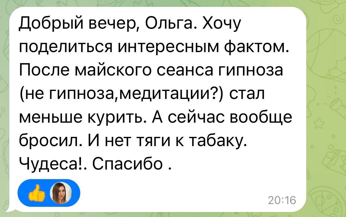 14 мая проводила групповой сеанс исцеления. Было много отзывов положительных. А вчера пришел еще один😂 Мужчина после него бросил курить 👍 Даже я не ожидала такого эффекта🙏 Кто готов повторить сеанс?❤️