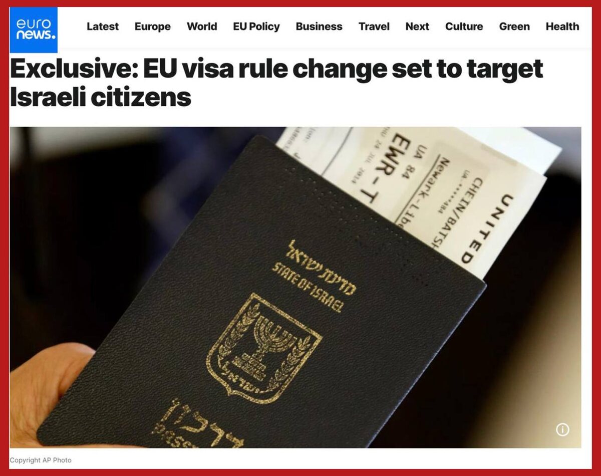 ‼️Евросоюз может приостановить краткосрочный безвиз для Израиля, сообщает Euronews