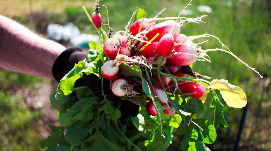 Редис. Чтобы избежать стрелкования, грядку под редис нужно выделить в полутени. Поливать редис нужно будет дважды в день, а чтобы его не заглушали сорняки, после всходов укрыть междурядья агроволокном или сухим сеном.
