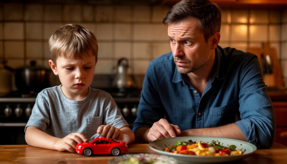 Мальчик послушно ушёл, продолжая катать машинку. В кухне повисла тишина, которую можно было резать ножом.