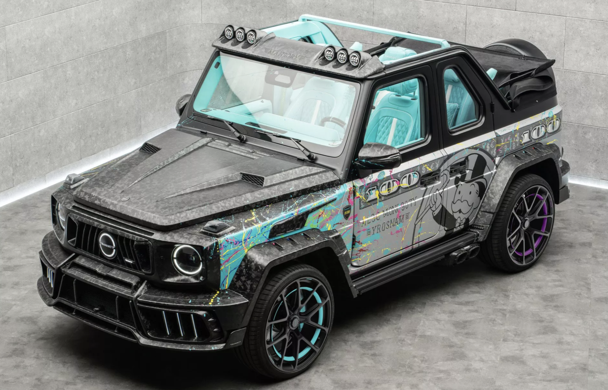 Иногда хочется сказать: "Ну все, они переборщили". Но потом выходят новые проекты Mansory — и ты понимаешь, что они просто не знакомы со словом "хватит". Перед вами не просто очередной доработанный G-класс. Это Speranza, редчайшая четырехдверная версия кабриолета G-Wagen, тиражом всего в 10 экземпляров. А этот — и вовсе штука особенная: результат сотрудничества с уличным художником Алеком Монополи. Получился автомобиль, который одновременно напоминает Гелик, музей современного искусства и психоделический комикс. Кузов практически полностью из кованого карбона. Не в смысле "где-то там крыло заменили" — тут капот, решетка радиатора и задняя дверь из этого материала. А потом вступает в дело Алек Монополи. И вот уже бока машины — это не металл, а игровое поле с символикой "Монополии", яркими неоновыми вспышками и арт-приступом, который сложно описать без слова "Чтоооо?!". Крышка запаски выглядит так, как будто ее нарисовали в момент прозрения где-то между Майами и Венецианской биеннале.