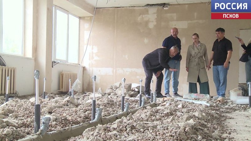 Ремонт второго этажа Палкинской средней школы на финишной прямой. Работы здесь начались еще во время учебного года. Выполнена отделка кабинетов, покраска коридора. Произведена замена систем электроснабжения и канализации. В период каникул подрядчик должен успеть отремонтировать первый и третий этажи здания. Самые масштабные работы сейчас идут в кабинете химии. Чтобы подвести воду к каждой парте и сделать необходимый уклон для труб, пришлось снять полы до межэтажных перекрытий. "Большое спасибо подрядчику, потому что мы нашли контакт, они идут на контакт, учитывают наши запросы, пожелания. Где-то нам советуют даже. Нет, давайте сделаем так, потому что то-то, то-то", - Мария Синькевич, и.о. директора Палкинской средней школы. Палкинской средней школе 38 лет и капитальный ремонт здесь не проводился ни разу. Ход работы оценили заместитель председателя Псковского областного Собрания Виктор Остренко и глава Палкинского района Ольга Потапова. Увиденным остались довольны. "В рабочем порядк
